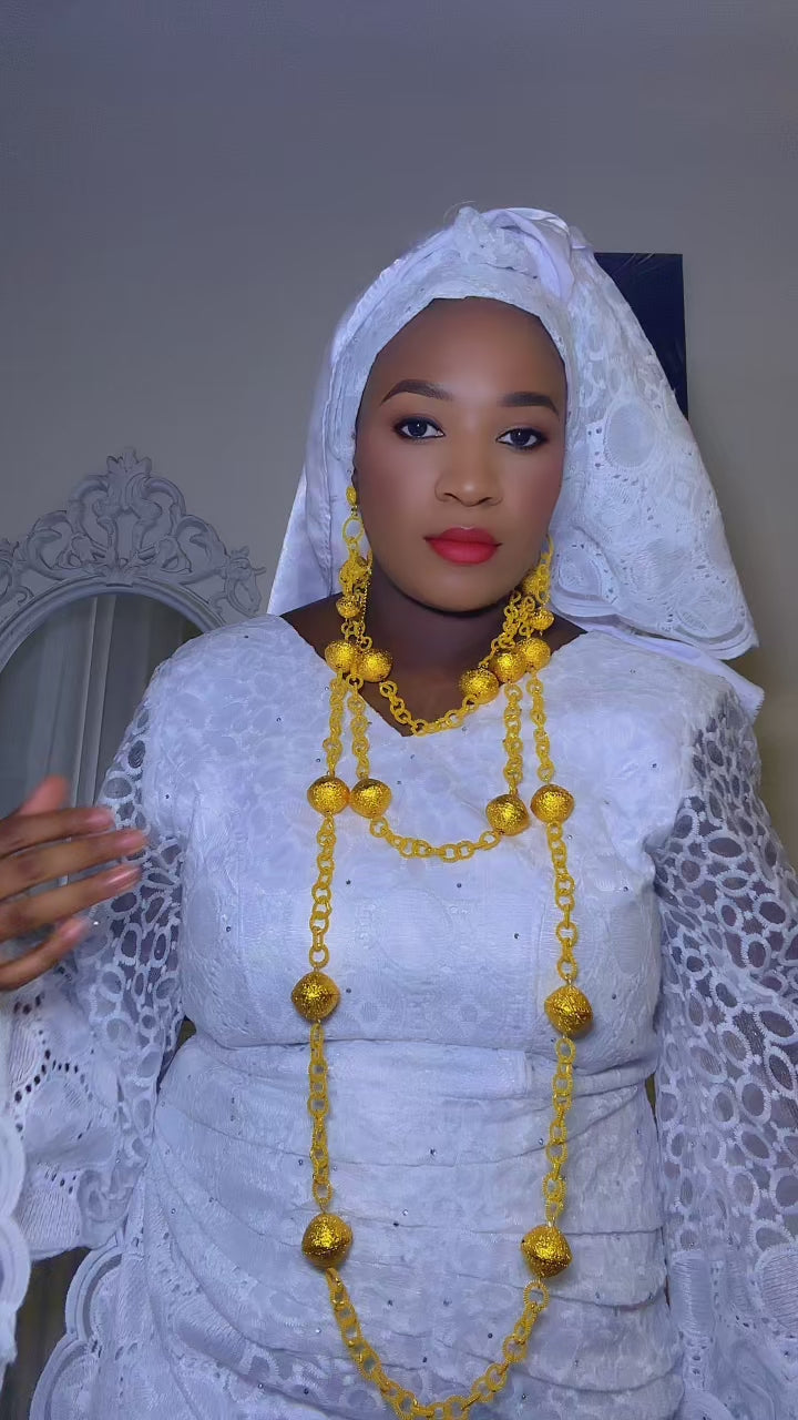 Élégante et majestueuse, la Parure Maty Djolokho est un bijou traditionnel d’exception, inspiré des parures africaines qui symbolisent prestige et raffinement.